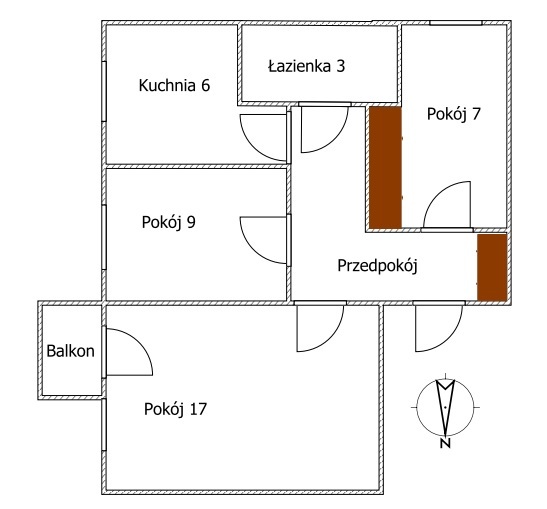 Składa się z: trzech niezależnych pokoi, oddzielnej, widnej kuchni, łazienki oraz przedpokoju.