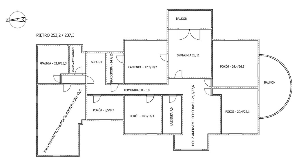6. PRZESTRONNE POMIESZCZENIA - część dzienna to ponad 100 mkw, pokoje od 16,5 do 25 mkw; wysokość 2,9m, miejscami ponad 3m