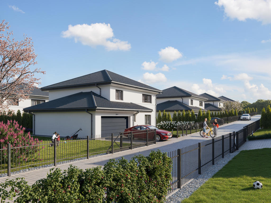 Budynki wolnostojące, postawione na działkach o powierzchni ok 600 mkw.