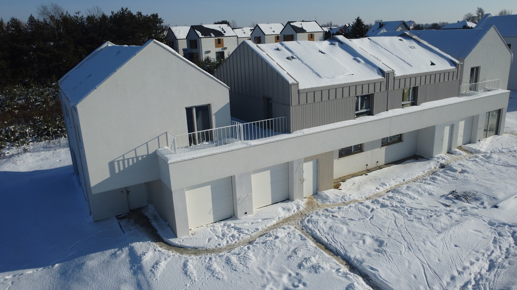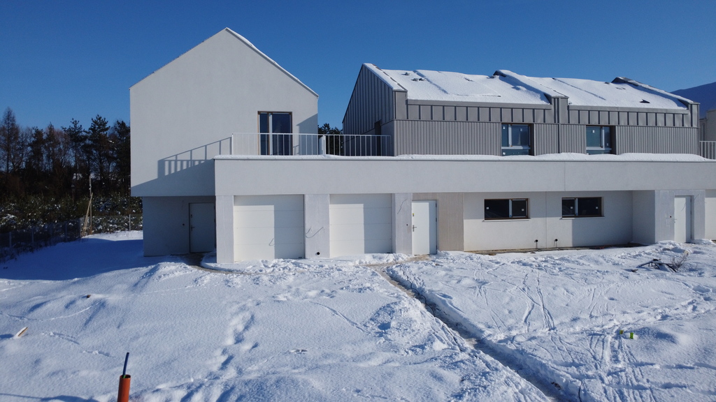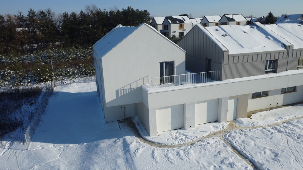 Piętrowy dom w zabudowie segmentowej o powierzchni użytkowej 114,54mkw, z garażem w bryle budynku.