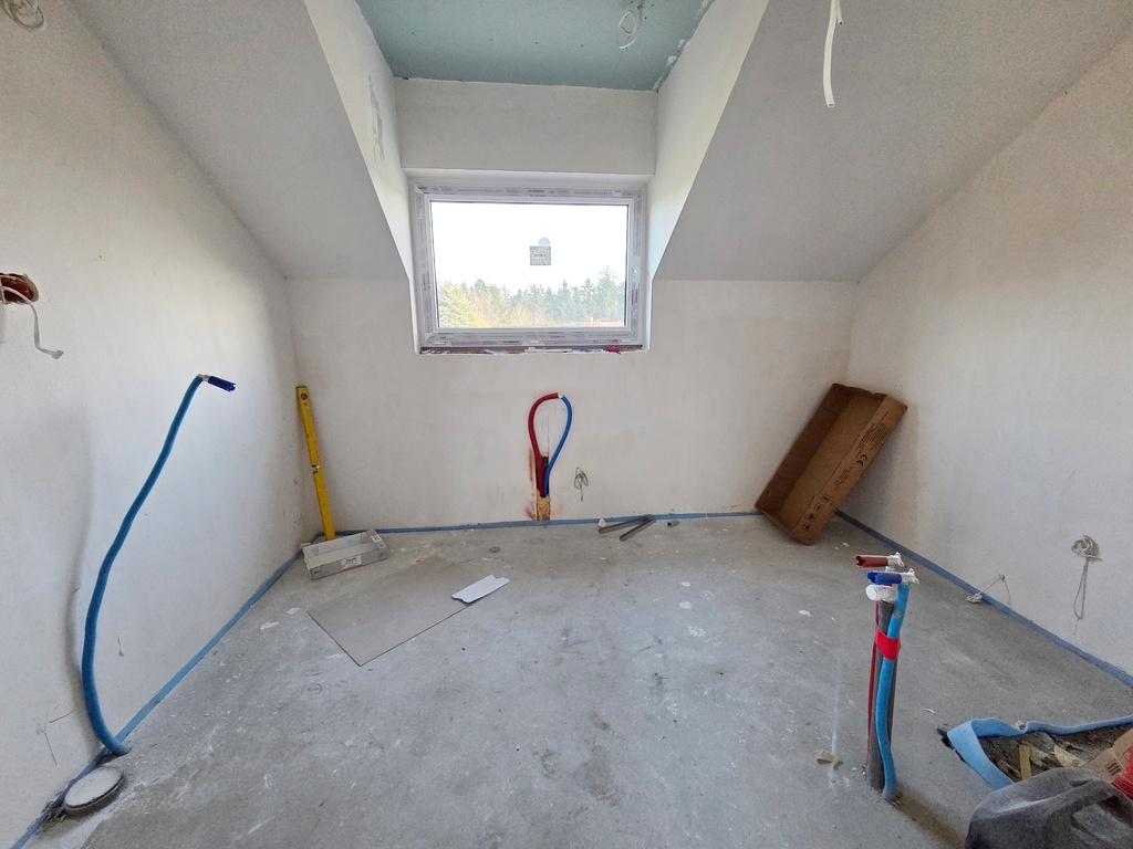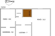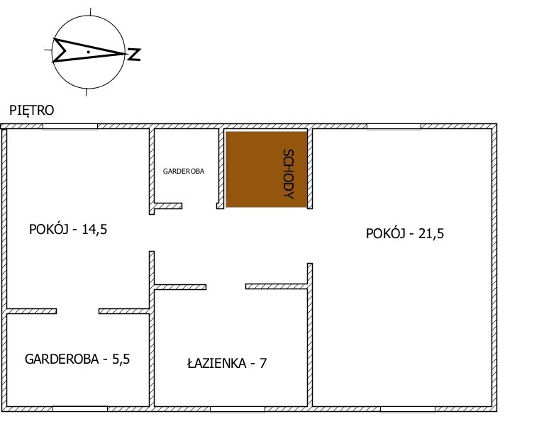 Na piętrze pokoje z oryginalnego projektu [4] zostały połączone i obecnie mamy dwa przestronne pomieszczenia, w tym jedno z garderobą.