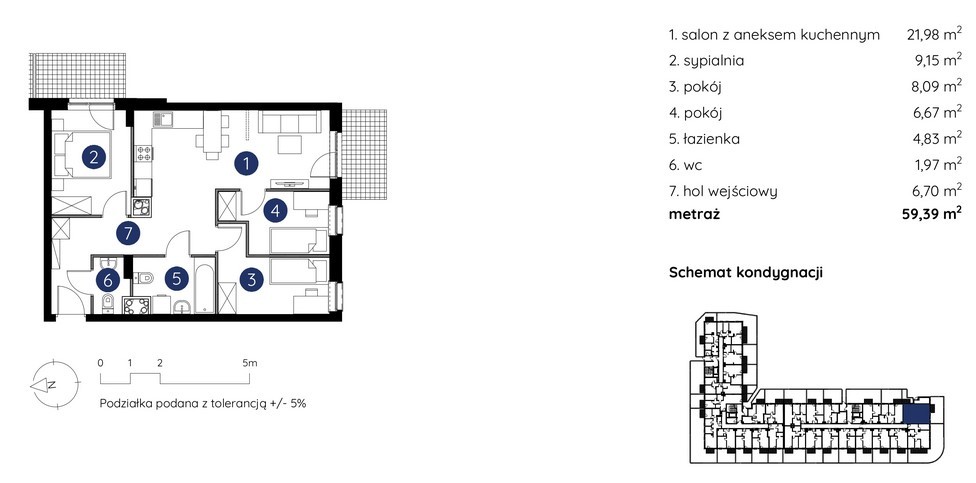 Czteropokojowe mieszkanie w nowo budowanym budynku o powierzchni 59,39m2 przy al. Spółdzielczości Pracy w Lublinie.