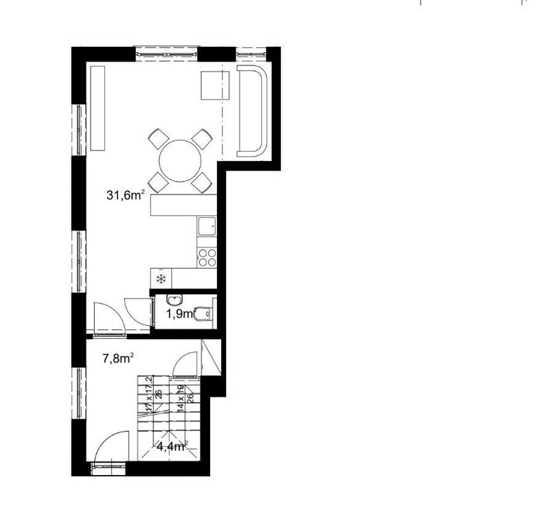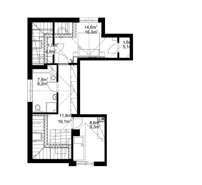 Powierzchnia całkowita (z garażem i kotłownią) - ok. 116 m2, powierzchnia użytkowa - ok. 86 m2