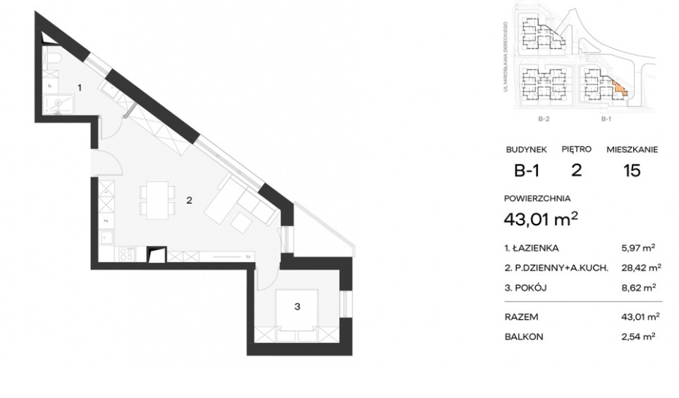 Mieszkanie o powierzchni 48,01mkw, składa się z: