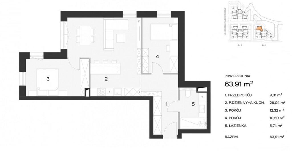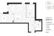 Mieszkanie o powierzchni 63,91mkw, składa się z: