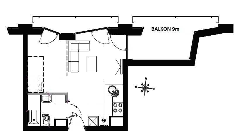 Dwa balkony, 4 i 9 mkw, komórka lokatorska.