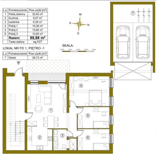 Do mieszkania przynależy ogródek, garaż dwustanowiskowy (36,73mkw).