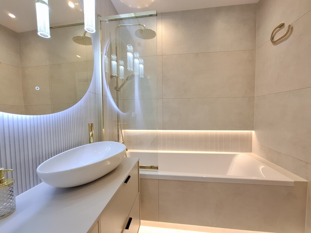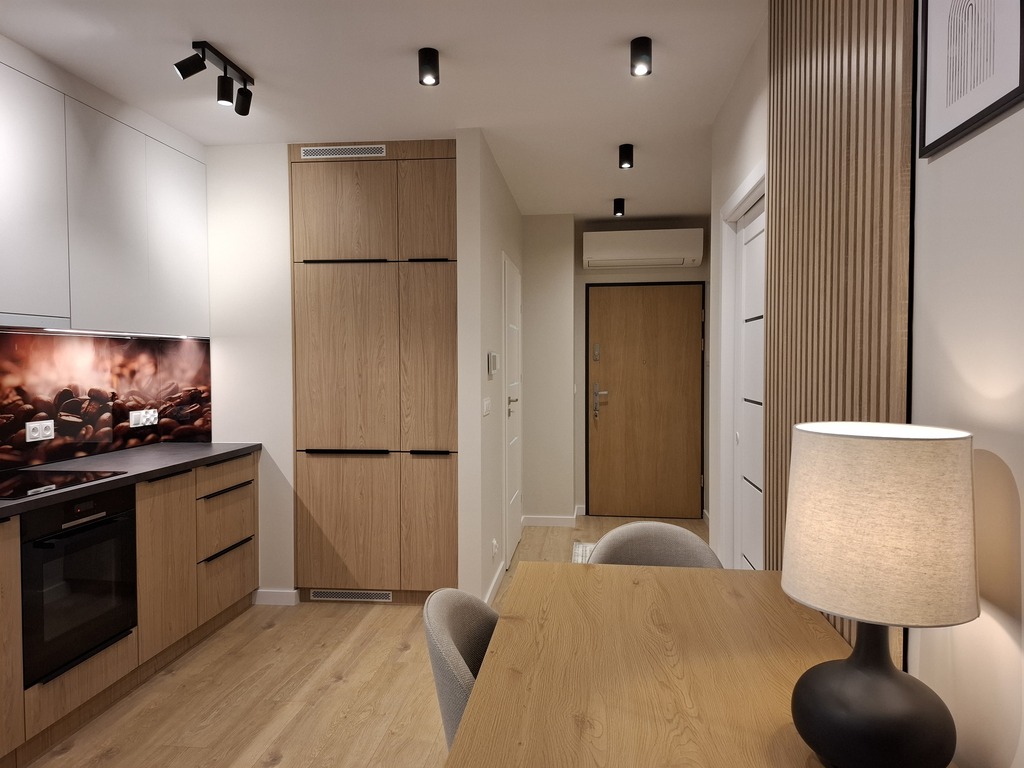 Nieruchomość została starannie zaprojektowana, z dbałością o wszystkie detale. Zabudowa meblowa wykonana na wymiar. Garderoba. Oświetlenie LED. Markowy sprzęt AGD: pralka, lodówka z zamrażarką, płyta indukcyjna, zmywarka, piekarnik. Klimatyzacja. Wideodomofon. Telewizor.
