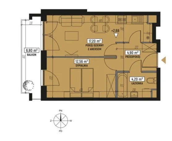 Funkcjonalne dwupokojowe mieszkanie o powierzchni 38,86m2 w nowej inwestycji w Lublinie na Wrotkowie.