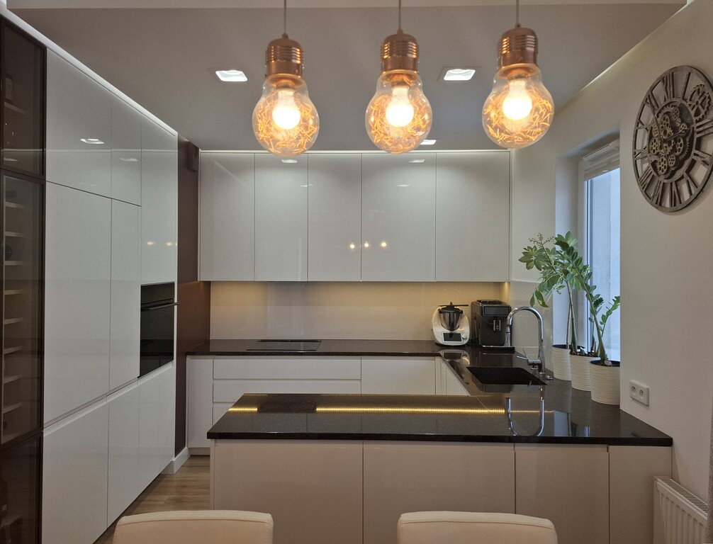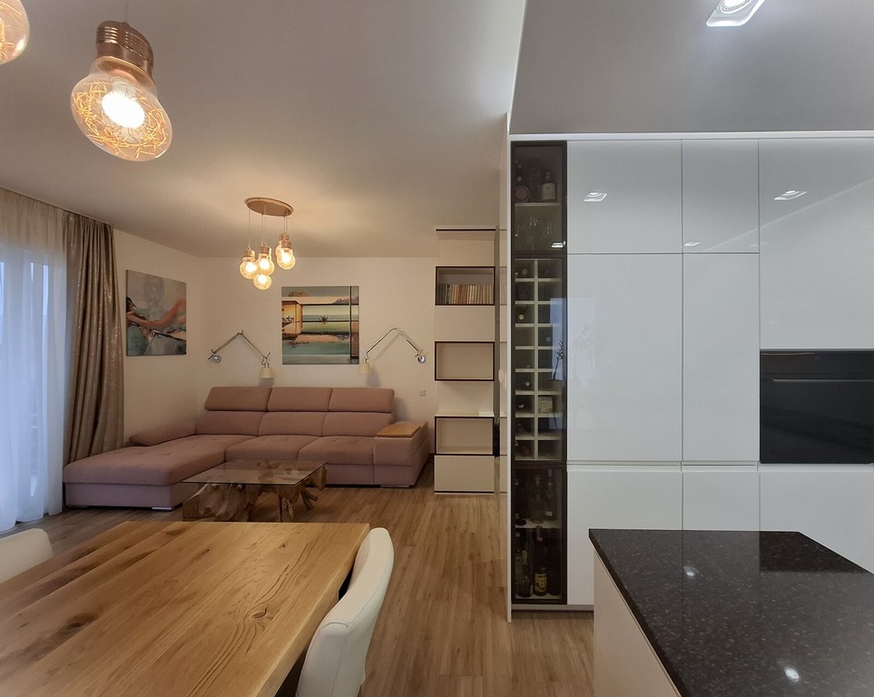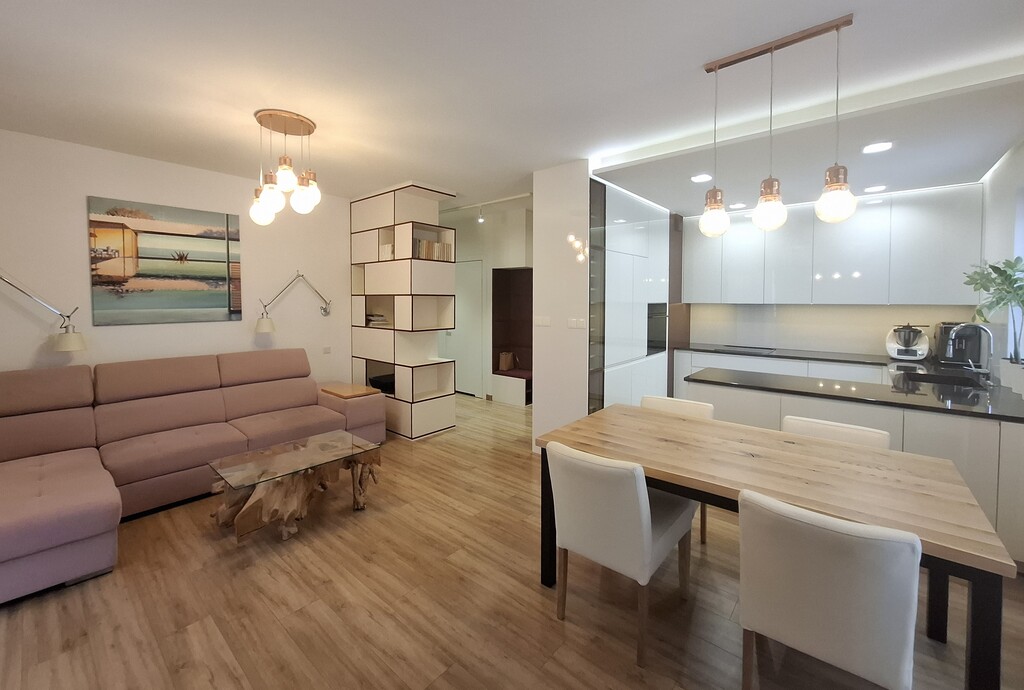 Wnętrze zostało zaprojektowane przez projektanta z myślą o maksymalnej funkcjonalności i estetyce — idealne dla rodziny, pary lub jako inwestycja.