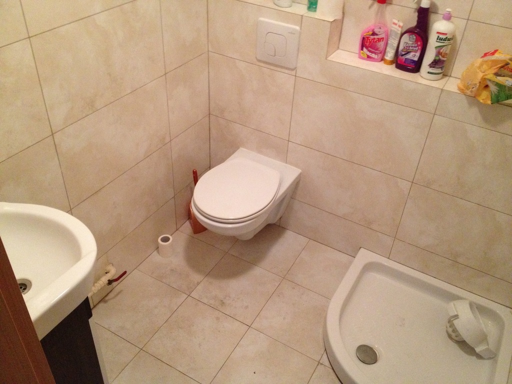 Ściany: gładź, glazura; Podłogi - parkiet; Okna - PCV.