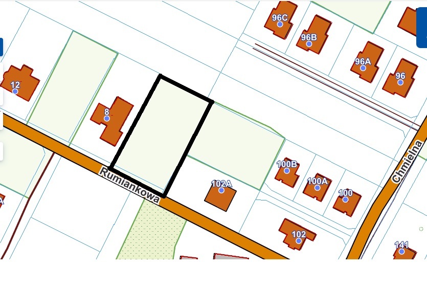 Działka o powierzchni 1582mkw wśród nowej zabudowy jednorodzinnej w miejscowości Kalinówka przy ul. Rumiankowej.